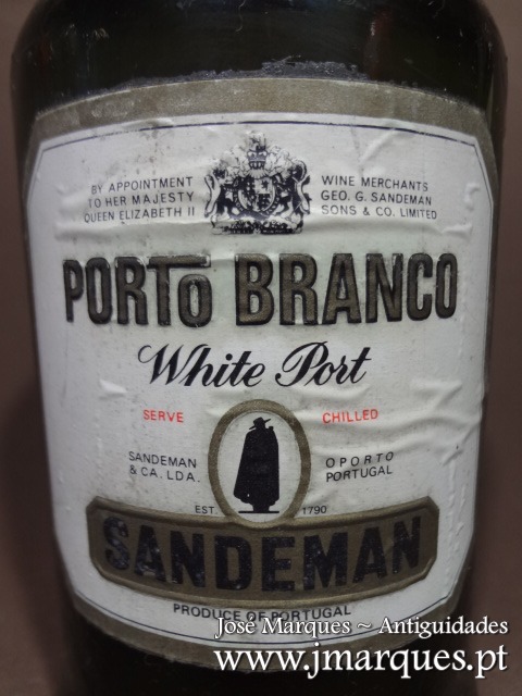 Ref: 133-30€ 14.00Garrafa antiga de vinho do Porto Sandeman Branco.