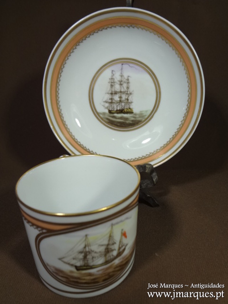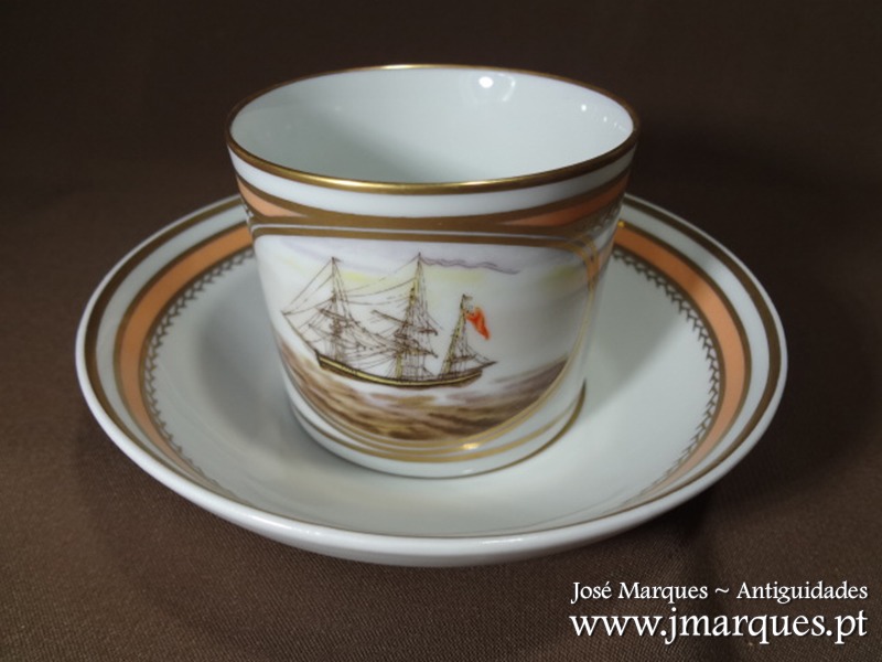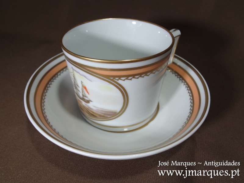 Ref: 368-06€ 20.00Chávena de Chá, ricamente decorada com galeão, fio laranja e dourado. Instituto Português de Museus, NG